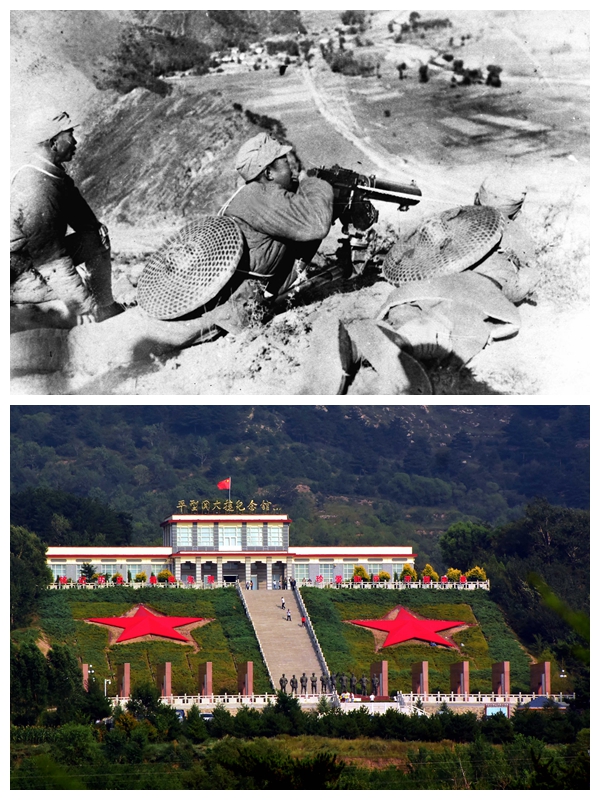 上圖為1937年9月25日,中國共產(chǎn)黨領(lǐng)導(dǎo)的人民軍隊(duì)取得抗戰(zhàn)以來第一個(gè)重要?jiǎng)倮叫完P(guān)大捷。這是平型關(guān)戰(zhàn)斗中,一一五師某部的機(jī)槍陣地。