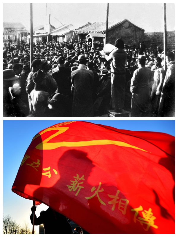 上圖為1935年12月9日,“一二·九”運(yùn)動(dòng)在北平爆發(fā)。這是被軍警擋在西直門外的大中學(xué)學(xué)生就地發(fā)表抗日演講。