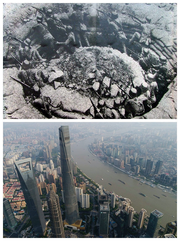 上圖為1937年8月13日至11月12日,中日軍隊(duì)進(jìn)行淞滬會(huì)戰(zhàn),這次會(huì)戰(zhàn)粉碎了日本軍國主義者速戰(zhàn)速?zèng)Q的迷夢。這是中國軍隊(duì)88師在上海閘北的環(huán)形工事里同日軍巷戰(zhàn)。