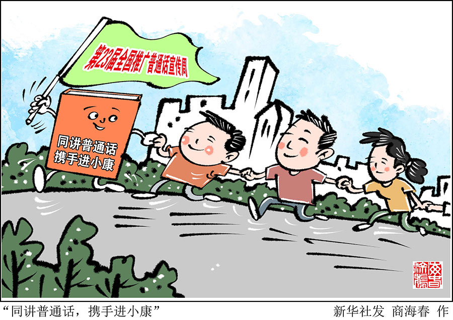 第23屆全國(guó)推廣普通話宣傳周14日拉開帷幕,今年宣傳周的主題為“同講普通話,攜手進(jìn)小康”。語(yǔ)言文字是人類交流的工具,是文化傳承的載體,也是治國(guó)安邦的重器。在決勝全面建成小康社會(huì)、決戰(zhàn)脫貧攻堅(jiān)的關(guān)鍵節(jié)點(diǎn),要堅(jiān)定不移推廣普及國(guó)家通用語(yǔ)言文字,促進(jìn)各地區(qū)各民族發(fā)展繁榮。