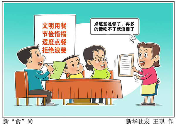 除了消費者的自覺外,餐飲店也新招頻出,引導文明用餐?!皬?月起我們對內部員工開展了‘光盤行動’主題宣教活動,旨在倡導‘文明餐桌’行為,提倡文明用餐的良好風氣?!崩_一家川菜館經理趙興成說。為了落實好這項活動,該店專門制定了“光盤行動”實施方案,并加強管理,抽調人員現(xiàn)場監(jiān)督。