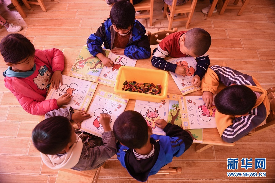 9月17日,在青海省果洛藏族自治州瑪沁縣拉加鎮(zhèn)中心幼兒園,孩子們正專心上著美術(shù)課。(新華網(wǎng)潘彬彬 攝)