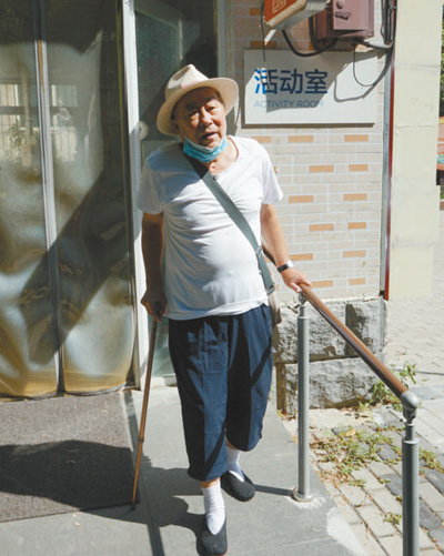 北京市海淀區(qū)北下關(guān)街道南里二社區(qū)經(jīng)過適老化改造后,老人生活更加方便。圖為社區(qū)養(yǎng)老服務(wù)中心門口,腿腳不便的老人依靠扶手出門。記者 申少鐵攝