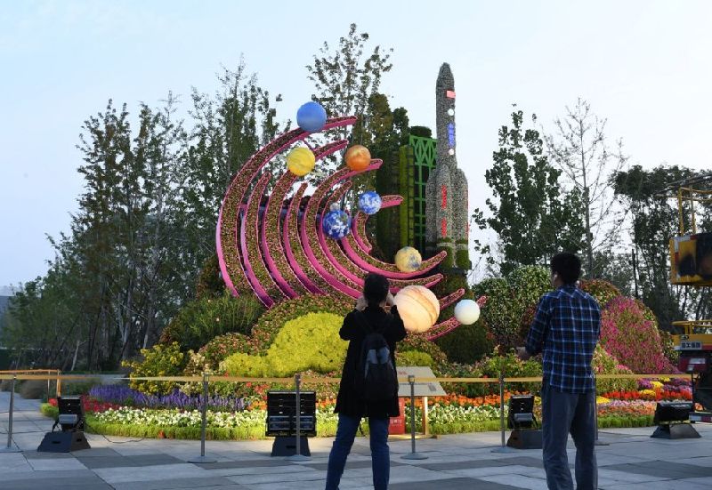 ↑《科技強(qiáng)國》花壇(西單路口東北角)