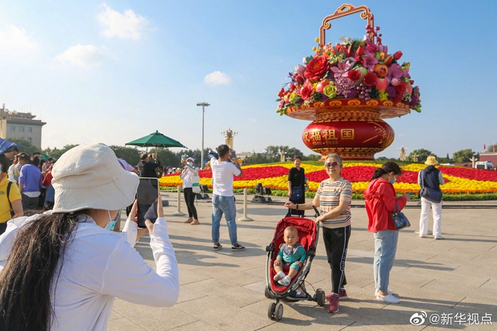 9月25日,經(jīng)過數(shù)日緊張施工,“祝福祖國(guó)”大花籃正式完工,亮相天安門廣場(chǎng),與市民游客見面,共迎國(guó)慶佳節(jié)。(記者魏夢(mèng)佳)