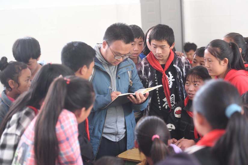 四川日報侯沖在美姑縣典補鄉(xiāng)中心小學采訪當?shù)乜剌z保學