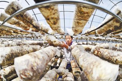 劉秋口村村民在大棚整理訂單種植的香菇。河北日?qǐng)?bào)通訊員 陳 雷攝