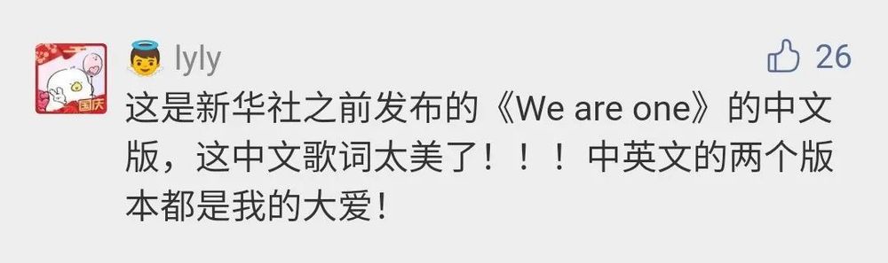 @Monstristing:歌聲有激勵(lì)磅礴的氣勢(shì),又兼具一絲絲的溫柔,吟唱鋪展開星辰大海的浩瀚,真是美妙。聽完感覺元?dú)鉂M滿,祖國母親生日快樂!