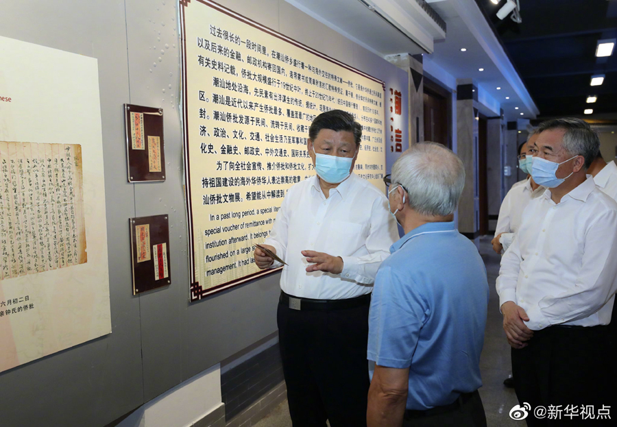 習(xí)近平總書記13日下午來到廣東省汕頭市小公園開埠區(qū),走進開埠文化陳列館、僑批文物館,了解汕頭開埠歷史、設(shè)立經(jīng)濟特區(qū)以來的建設(shè)發(fā)展情況,和潮汕僑胞心系家國故土、支持祖國和家鄉(xiāng)建設(shè)的歷史。隨后,習(xí)近平步行察看開埠區(qū)街區(qū)人文歷史風(fēng)貌,同市民群眾親切交流。(文字記者:張曉松、朱基釵 攝影記者:鞠鵬、王曄、李響)