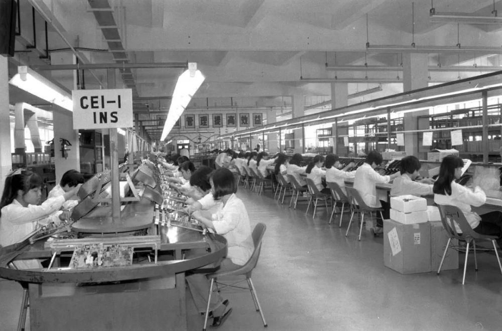 廈門(mén)特區(qū)湖里工業(yè)區(qū)廈華電子有限公司彩色電視機(jī)廠基板裝配生產(chǎn)線。新華社記者 李開(kāi)遠(yuǎn) 攝(1987年11月2日)