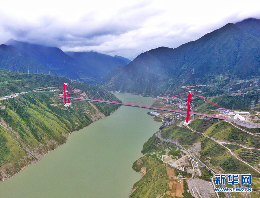 這是雅康高速上橫跨大渡河的大橋(9月16日攝,無人機(jī)照片)。新華社記者 劉坤 攝
