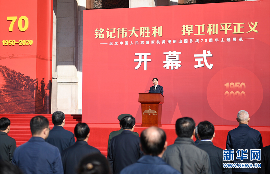 10月19日,“銘記偉大勝利 捍衛(wèi)和平正義——紀(jì)念中國人民志愿軍抗美援朝出國作戰(zhàn)70周年主題展覽”開幕式在中國人民革命軍事博物館舉行。中共中央政治局常委、中央書記處書記王滬寧發(fā)表講話并宣布展覽開幕。 新華社記者 燕雁 攝