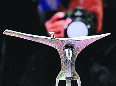 二里頭夏都遺址博物館展品“乳釘紋銅爵”。新華社記者 李安攝