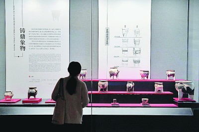 參觀者在二里頭夏都遺址博物館內(nèi)欣賞展品。新華社記者 李安攝