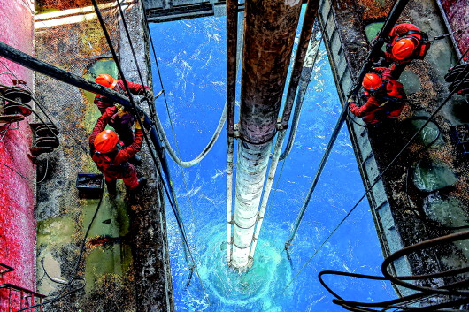 ▲工人在勘探三號上作業(yè)(7月27日攝)。圖片均由本報記者蒲曉旭攝