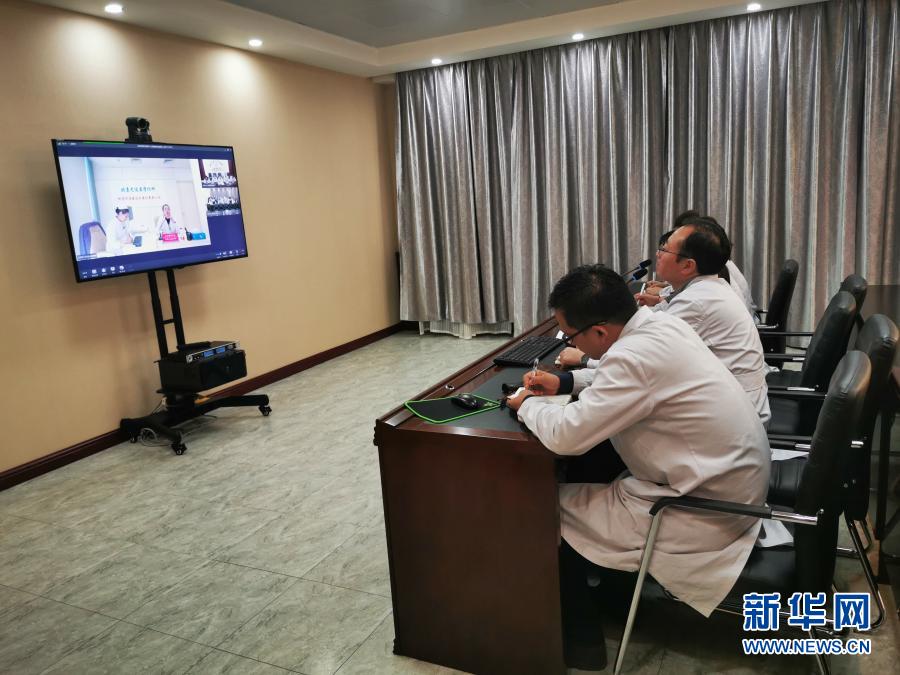 2019年10月25日,黑龍江省海倫市人民醫(yī)院醫(yī)生通過遠(yuǎn)程技術(shù)與外地專家一同進(jìn)行會(huì)診(手機(jī)照片)。新華社發(fā)