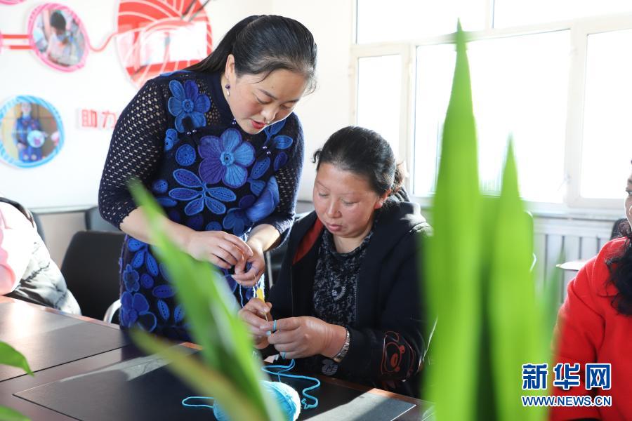 借助技術(shù)培訓(xùn),黎明村村民李明鴿成為遠(yuǎn)近聞名的“編織能手”,依靠一根鉤針,編織抱枕、圍巾、衣服等,為自己和鄉(xiāng)親們開拓了一條致富路。