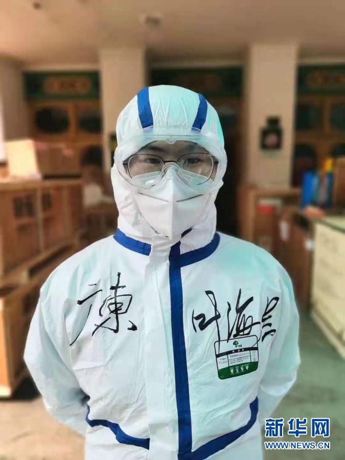 這是在武漢市第七醫(yī)院病區(qū)工作的葉海蘭(3月14日攝)。新華社發(fā)