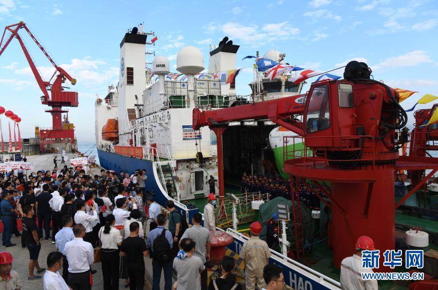 11月28日,在三亞市南山港,“探索一號(hào)”科考船的科考人員下船接受歡迎人群的迎接。新華社記者 趙穎全 攝