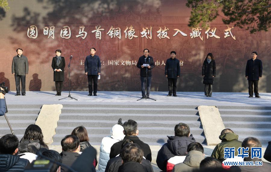 這是12月1日拍攝的“圓明園馬首銅像劃撥入藏儀式”現(xiàn)場。新華社記者 李賀 攝