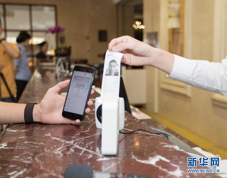 這是“微警認證”身份認證技術在辦理酒店入住時的應用場景(2018年7月19日攝)。新華社發(fā)(廣州市公安局供圖)