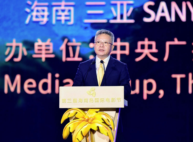 光影傳情,全球電影人共相聚。12月5日,由中央廣播電視總臺(tái)與海南省人民政府共同主辦的第三屆海南島國際電影節(jié)在三亞海棠灣開幕。中宣部副部長、中央廣播電視總臺(tái)臺(tái)長、第三屆海南島國際電影節(jié)組委會(huì)主席慎海雄,中共海南省委書記、海南省人大常委會(huì)黨組書記沈曉明出席開幕式并致辭。慎海雄宣布第三屆海南島國際電影節(jié)開幕。