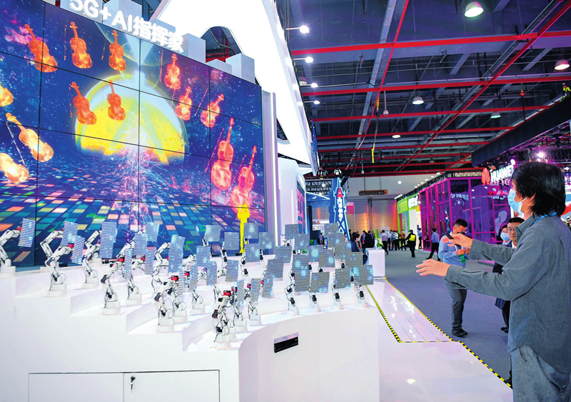 11月26日,工作人員在2020世界5G大會(huì)上調(diào)試5G體驗(yàn)設(shè)施 鄧華攝 / 本刊
