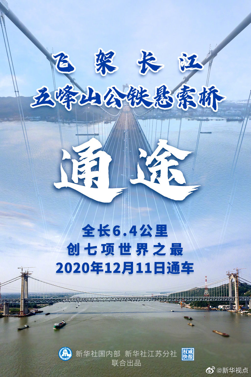 11日上午,世界上最大的公鐵兩用懸索橋——連接江蘇揚(yáng)州和鎮(zhèn)江的五峰山長(zhǎng)江大橋通車(chē)?yán)?!大橋全長(zhǎng)6.4公里,創(chuàng)七項(xiàng)世界之最。(記者:楊紹功、吳新生 設(shè)計(jì):張惠慧、張晨光)?