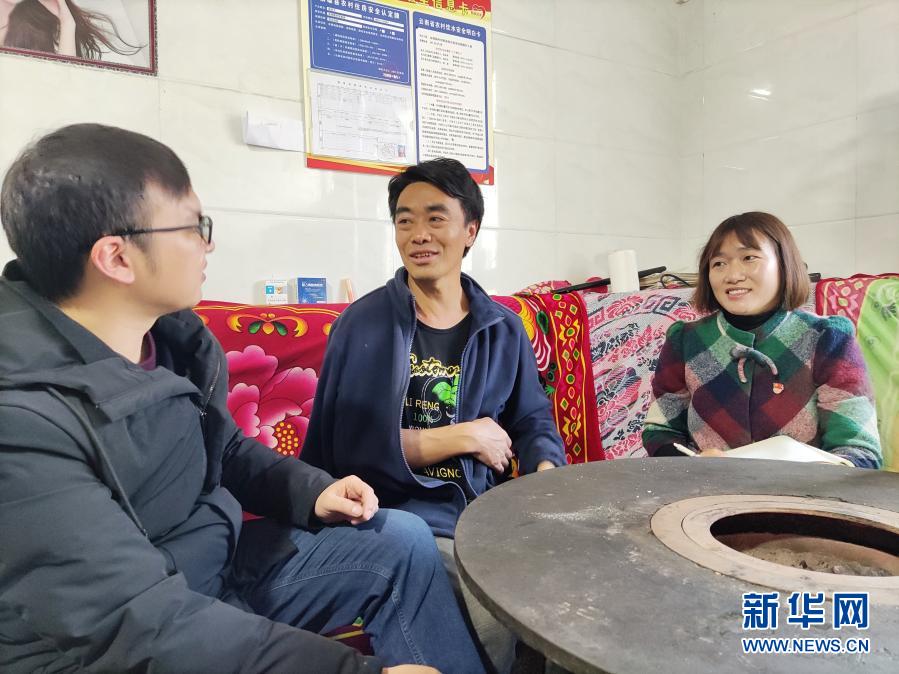 11月12日,云南省鎮(zhèn)雄縣以古鎮(zhèn)巖洞腳村駐村第一書記郭登會(huì)(右)和扶貧隊(duì)員到村民趙慶元(中)家里走訪。新華社記者 林碧鋒 攝
