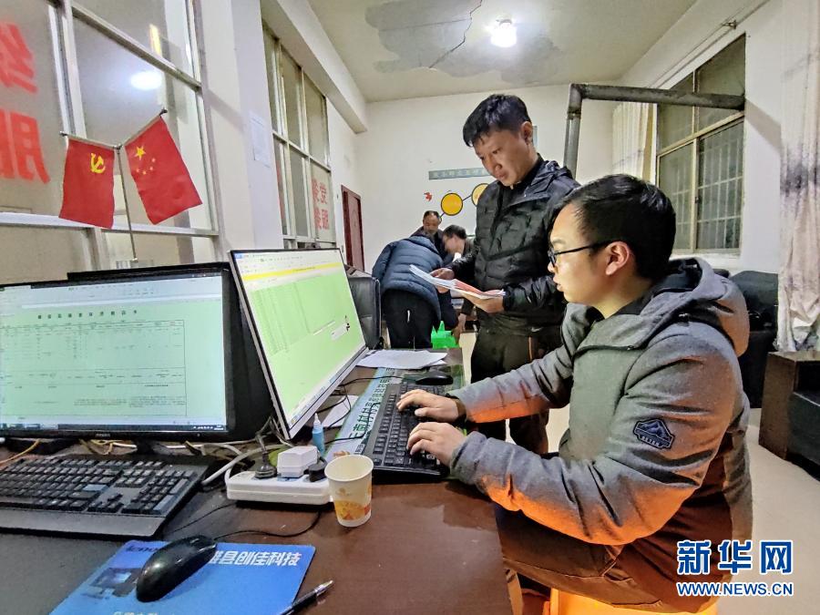 11月11日晚,云南省鎮(zhèn)雄縣以古鎮(zhèn)巖洞腳村駐村扶貧隊(duì)員在村委會(huì)工作。新華社記者 林碧鋒 攝