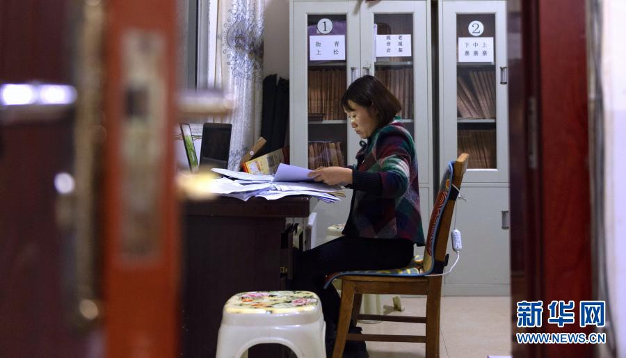 11月11日晚,云南省鎮(zhèn)雄縣以古鎮(zhèn)巖洞腳村駐村第一書記郭登會(huì)在村委會(huì)工作。新華社記者 王冠森 攝