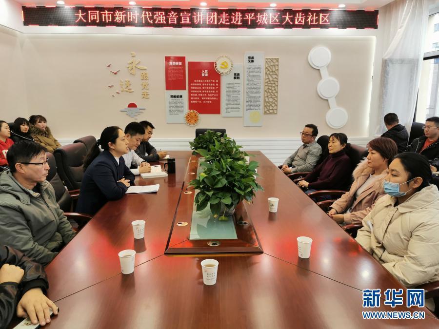 12月10日,大同市新時(shí)代強(qiáng)音宣講團(tuán)成員賈萬新在大同市大齒社區(qū)宣講。新華社記者 王菲菲 攝