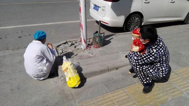 ??蹲在路邊吃起來