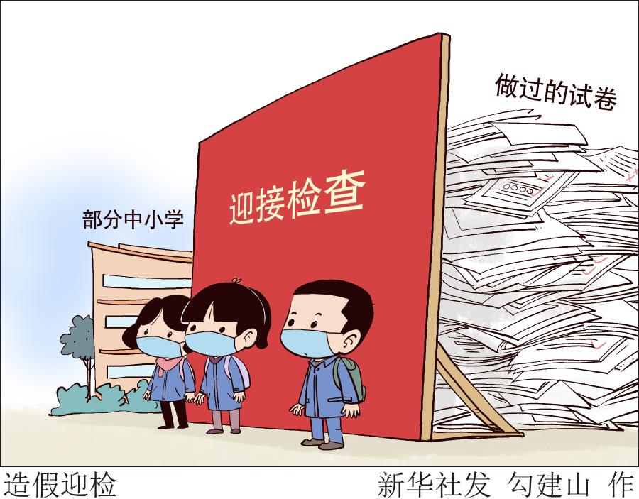“明天學(xué)校迎接本學(xué)期檢查,所有做過的試卷都放在家里!”“檢查組要來,學(xué)校文化墻上再貼幾個標語”……進入12月后,部分中小學(xué)師生全力以赴迎檢,有的學(xué)校甚至停止正常的教育教學(xué),反復(fù)叮囑孩子“藏好試卷”,造假迎檢。
