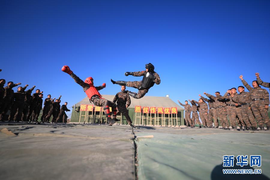 武警新疆總隊(duì)某機(jī)動(dòng)支隊(duì)特戰(zhàn)一中隊(duì)組織官兵開展搏擊訓(xùn)練(10月31日攝)。新華社發(fā)(張文 攝)