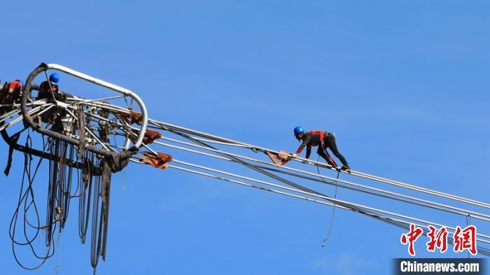 施工人員正在開展線上作業(yè)施工。 楊林 攝