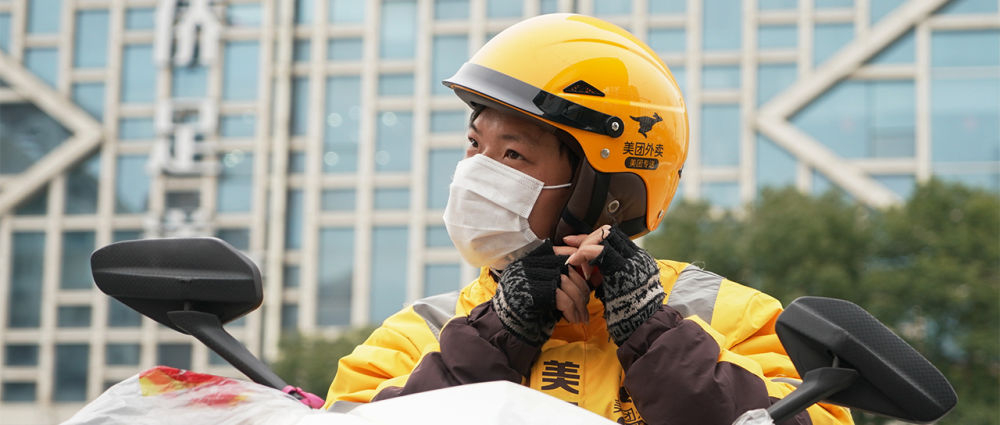 外賣小哥陳凱,戴著口罩,為陌生的人們運送著米面油鹽和一日三餐。