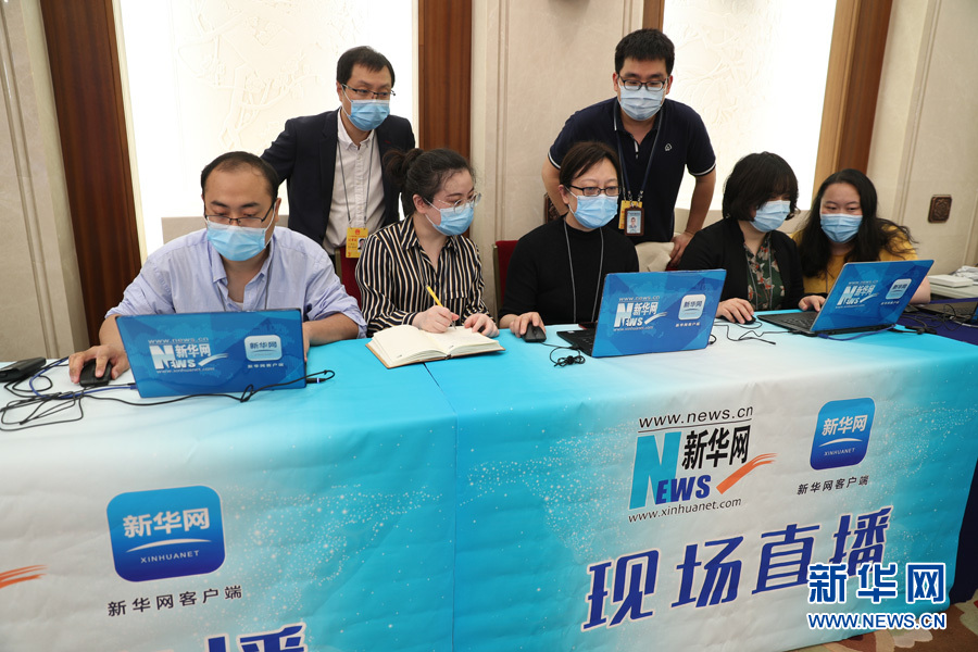 ??? 5月20日,全國政協(xié)十三屆三次會議召開新聞發(fā)布會。大會新聞發(fā)言人郭衛(wèi)民向中外媒體介紹本次大會有關情況并回答記者提問。圖為本網記者在新聞發(fā)布會現場做直播準備工作。新華網記者?王翰林 攝