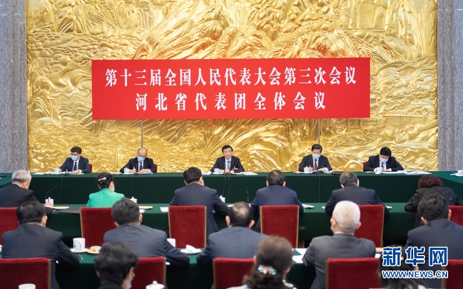 5月22日,中共中央政治局常委、中央書(shū)記處書(shū)記王滬寧參加十三屆全國(guó)人大三次會(huì)議河北代表團(tuán)的審議。 新華社記者 翟健嵐 攝