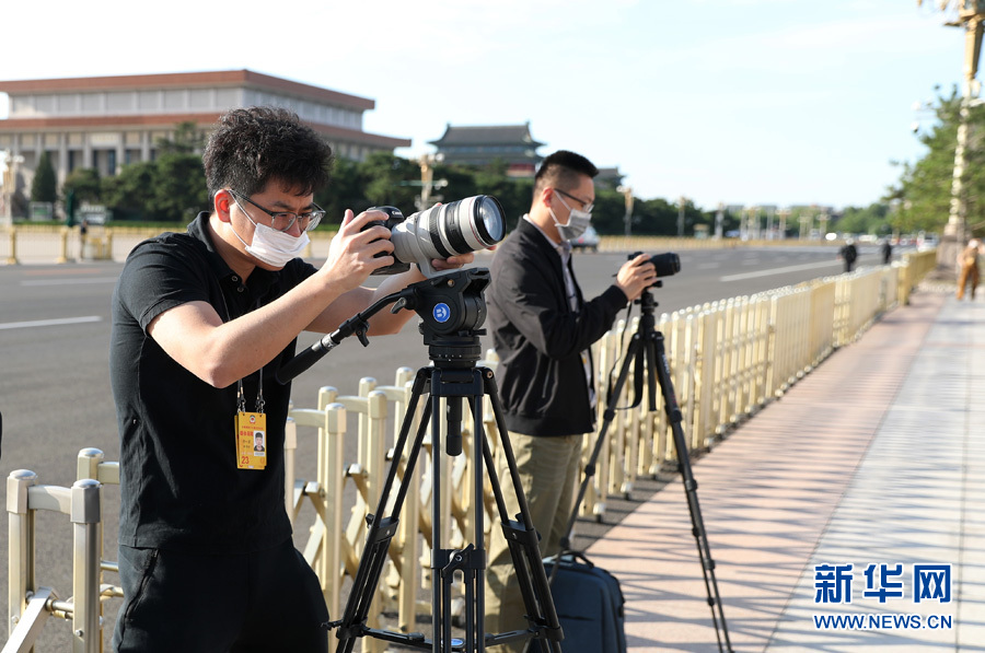 ??? 5月24日,全國政協(xié)十三屆三次會(huì)議第二次全體會(huì)議在人民大會(huì)堂舉行。圖為媒體記者在人民大會(huì)堂東門外拍攝。新華網(wǎng) 翟子赫 攝