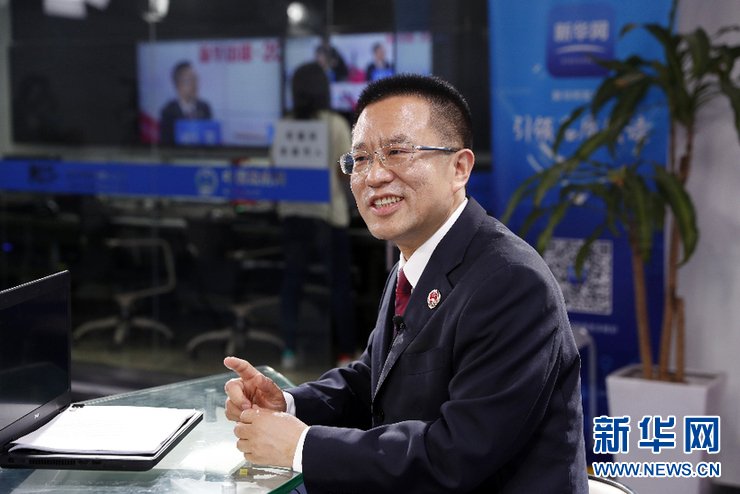 最高檢辦公廳主任、新聞發(fā)言人王松苗做客新華網(wǎng),解讀最高人民檢察院工作報(bào)告。陳杰攝