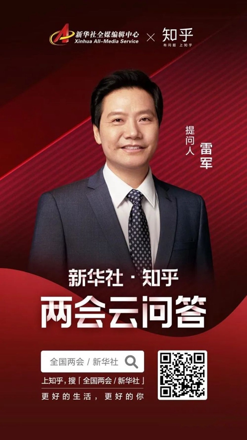 今年全國兩會期間,新華社聯(lián)合知乎發(fā)起《兩會云問答》,鐘南山、雷軍、姚明、張文宏、雷佳、郎朗首次跨界“云”問答。企業(yè)家雷軍的問題是:未來幾年,科技領(lǐng)域會有哪些重大突破?將為哪些行業(yè)帶來新機遇?