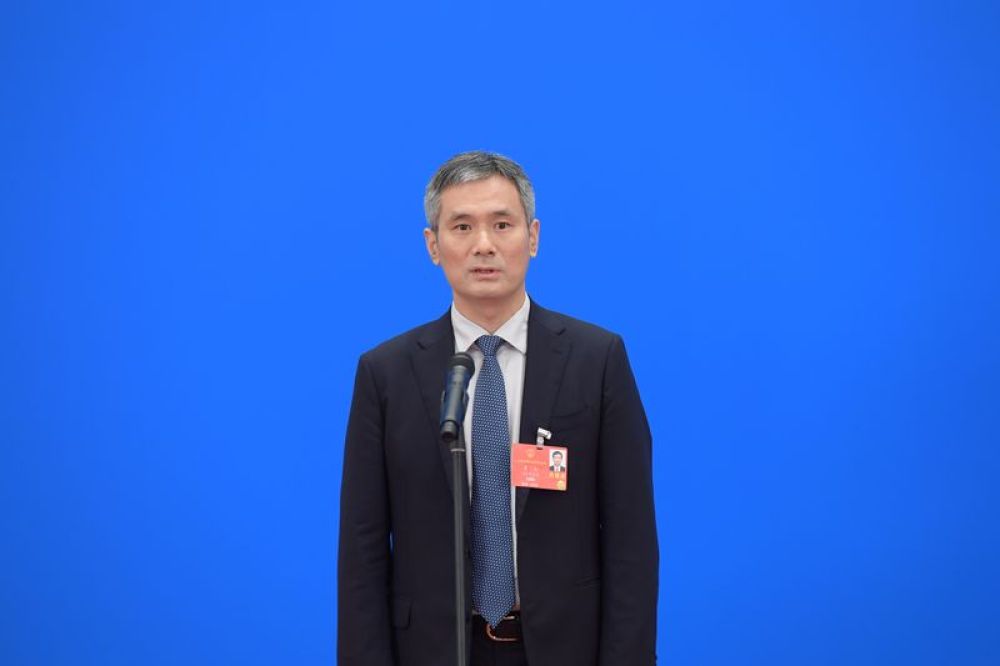 5月22日,第十三屆全國人民代表大會第三次會議舉行首場“代表通道”采訪活動(dòng)。這是全國人大代表羅杰接受采訪。新華社記者 李賀 攝
