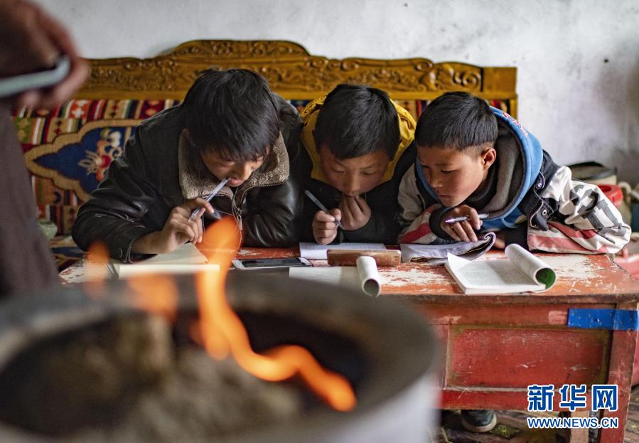2020年3月6日,西藏當雄縣烏瑪塘鄉(xiāng)巴嘎村的孩子在上網課。