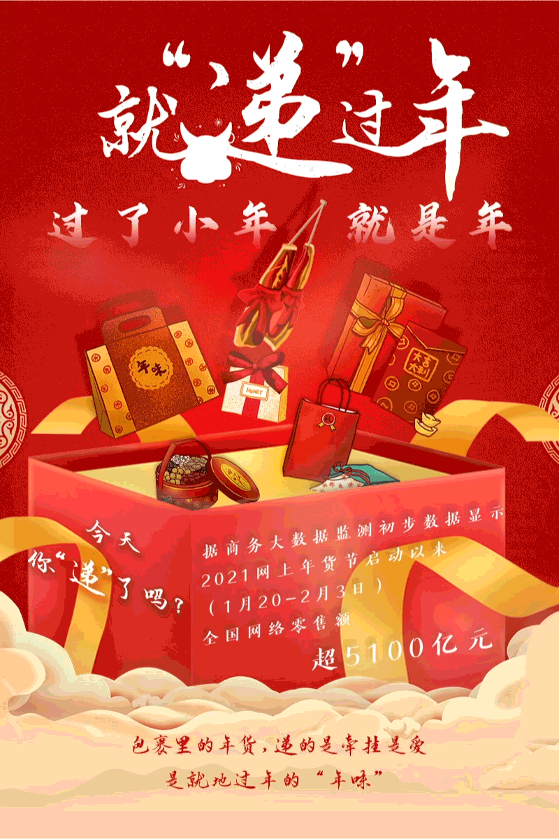 就地過(guò)年,年味不減。商務(wù)部2月4日發(fā)布數(shù)據(jù),由商務(wù)部等部門(mén)指導(dǎo)開(kāi)展的“2021年全國(guó)網(wǎng)上年貨節(jié)”,自1月20日啟動(dòng)以來(lái),全國(guó)網(wǎng)絡(luò)零售額已超5100億元。“云”購(gòu)年貨,就“遞”過(guò)年,成為人們的新年俗。(記者于佳欣、王雨蕭,設(shè)計(jì)張晨光)