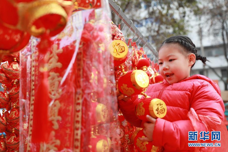 2月10日,一名小朋友在安徽省淮北市一年貨市場(chǎng)挑選新年飾品。新華社發(fā)(萬(wàn)善朝 攝)