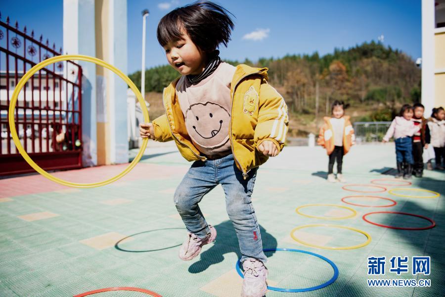 云南省鎮(zhèn)雄縣以古鎮(zhèn)巖洞腳村幼兒園的孩子在操場(chǎng)上玩耍(2020年11月11日攝)。新華社記者 王冠森 攝