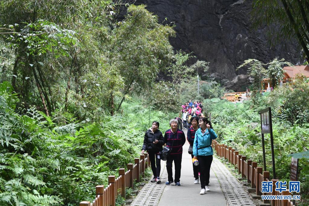 游客在廣西巴馬瑤族自治縣百魔洞景區(qū)游玩(2017年3月16日攝)。新華社記者 周華 攝