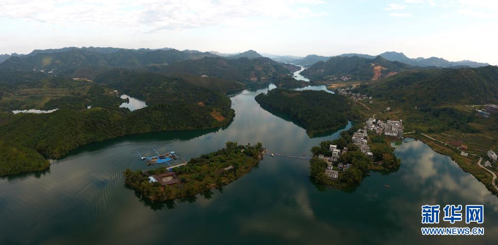 這是廣西巴馬瑤族自治縣賜福湖和長(zhǎng)壽島景觀(2018年11月8日攝,無(wú)人機(jī)照片)。新華社記者 陸波岸 攝