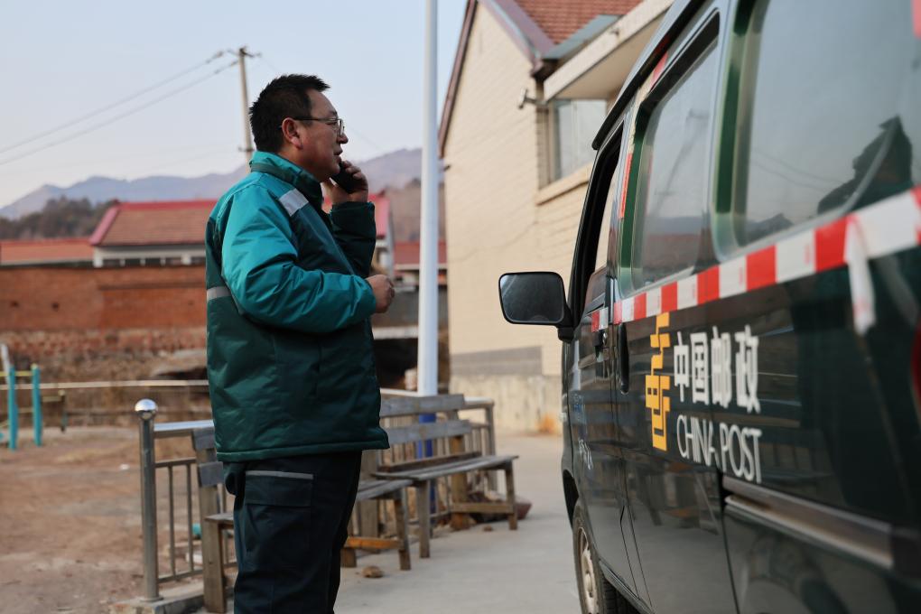 那是一辆墨绿色的邮政车,驾驶员为投递员刘大方,车里满载着天津市蓟州区下营镇百姓的年货。
